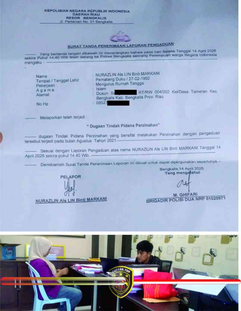 BENGKALIS, BURKAS.TOP – Kasus dugaan perselingkuhan yang melibatkan oknum aparatur desa di Desa Temeran, Kecamatan Bengkalis, resmi bergulir ke ranah hukum. N (Istri dari A) melaporkan dugaan tindak pidana perzinaan ke Polres Bengkalis pada Selasa (14/4/2026).