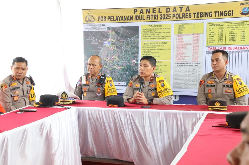 BURKAS.TOP, TEBING TINGGI |– Wakapolda Sumut, Brigjen Pol Rony Samtana, bersama Pejabat Utama (PJU) Polda Sumut meninjau Pos Pelayanan dan Pos Pengamanan Idulfitri 1446 H di wilayah hukum Polres Tebing Tinggi, Jumat (28/3/2025).