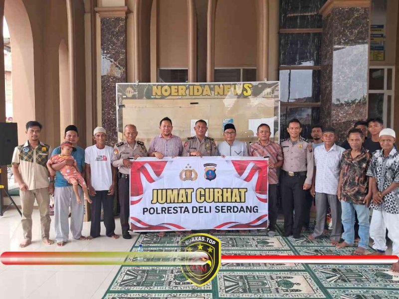BURKAS.TOP, DELI SERDANG -Jumat Curhat merupakan program Polri dengan tujuan membangun kemitraan kepada masyarakat dalam membangun Kamtibmas dan meningkatkan intensitas untuk lebih sering bertatap muka didalam menyerap aspirasi kepada masyarakat dan memberikan informasi terkait dengan situasi kamtibmas di wilayah Kabupaten Deli Serdang yang kali ini dilaksanakan di Mesjid Noer Ida Desa Penara Kebun Kecamatan Tanjung Morawa. Jumat (19/7/2024)