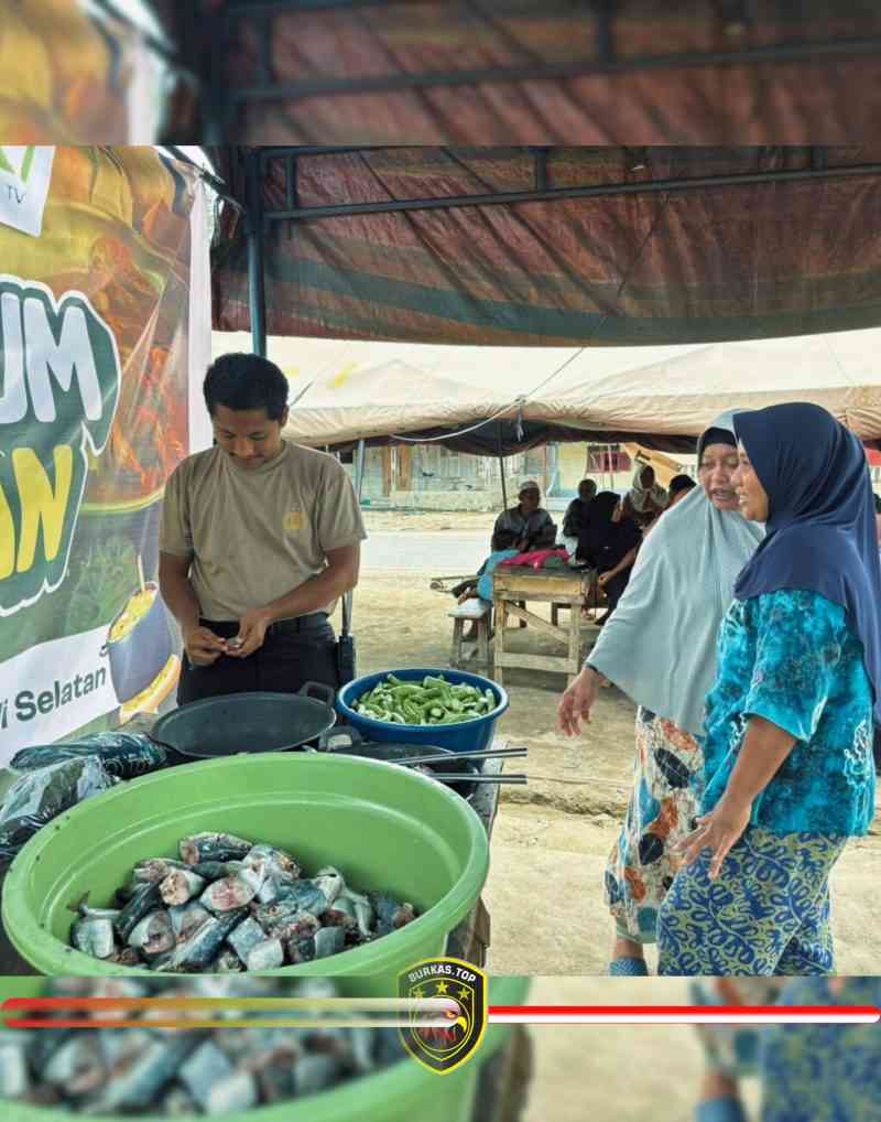 BURKAS.TOP, TAPANULI SELATAN | — Personel Brimob Batalyon C kembali menunjukkan kepedulian sosial kepada masyarakat melalui kegiatan penyaluran bantuan sembako dan penyelenggaraan dapur lapangan di Desa Aek Ngadol, Kecamatan Batang Toru, Kabupaten Tapanuli Selatan, Jumat (27/2/2026).