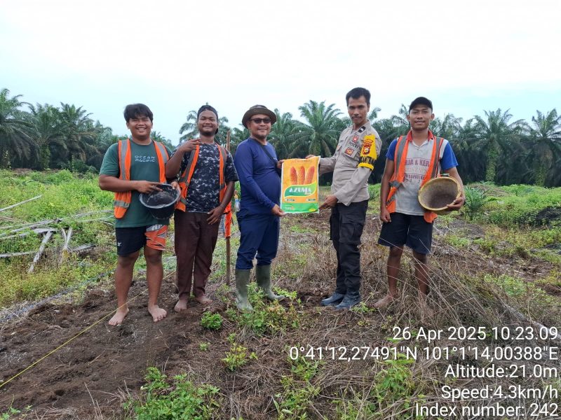 Burkas top — Kampar Tapung Hilir, – Bhabinkamtibmas Desa Tebing Lestari dan Desa Sekijang terus aktif mendukung program Asta Cita yang dicanangkan oleh Kapolri, salah satunya dengan meningkatkan ketahanan pangan di wilayah tugasnya. Pada Sabtu (26/04/2025) sekira pukul 10.30 WIB, Bhabinkamtibmas melakukan kegiatan tumpang sari penanaman jagung di areal kebun Bara Induk yang berlokasi di RT 009 RW 002 Desa Sekijang Kec Tapung Hilir Kab Kampar.