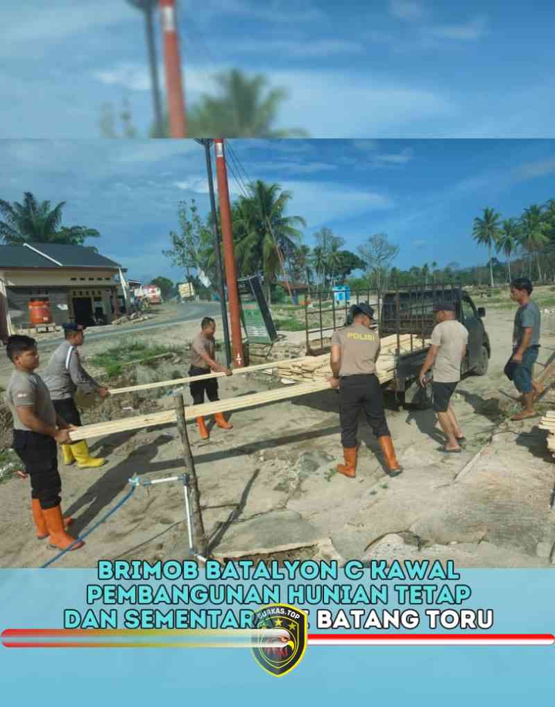 BURKAS.TOP, TAPANULI SELATAN | — Personel Brimob Batalyon C terus menunjukkan komitmennya dalam mendukung pemulihan pascabencana melalui pengamanan dan keterlibatan langsung pada pembangunan hunian bagi masyarakat terdampak. Kegiatan tersebut dilaksanakan pada Sabtu, 21 Februari 2026, di wilayah Kecamatan Batang Toru, Kabupaten Tapanuli Selatan.