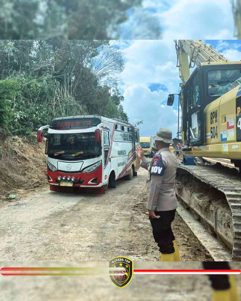 BURKAS.TOP, SIPIROK | — Personel Brimob Batalyon C bersama Personel Polsek Sipirok melaksanakan pengaturan lalu lintas di Dusun Pengkolan, Desa Luat Lombang, Kecamatan Sipirok, Jumat (09/01/2026). Kegiatan yang dimulai sejak pukul 10.00 WIB tersebut dilakukan guna menjaga kelancaran dan keselamatan pengguna jalan di tengah proses perbaikan jalan pascalongsor.