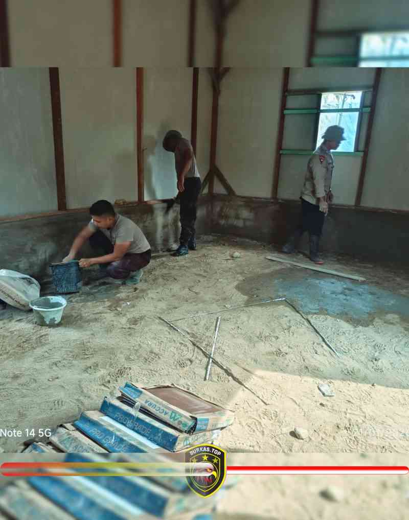 Dalam pelaksanaannya, personel Brimob Batalyon C melakukan pekerjaan plester dinding pada rumah swadaya hunian sementara ke-11 yang dibangun di wilayah tersebut. Proses ini menjadi tahapan penting untuk memastikan rumah yang dibangun lebih layak, aman, dan nyaman bagi penghuninya.