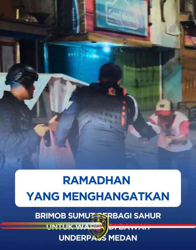 BURKAS.TOP, MEDAN | – Personel Satuan Brimob Polda Sumatera Utara (Sumut) menggelar aksi sosial bertajuk Sahur on the Road di kawasan Underpass Jalan Denai, Kecamatan Medan Denai, Minggu (1/3/2026) dini hari. Kegiatan ini menyasar warga yang masih beraktivitas maupun yang bermukim di sekitar lokasi menjelang waktu sahur.
