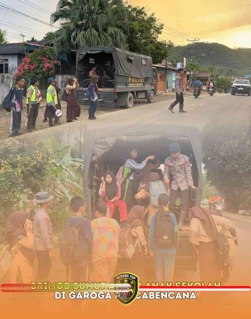 BURKAS.TOP, TAPANULI SELATAN | — Kepedulian terhadap keberlangsungan pendidikan anak-anak di wilayah terdampak bencana terus ditunjukkan oleh personel Sat Brimob Polda Sumatera Utara. Pada Jumat (6/2/2026), personel Posko Utama Garoga melaksanakan penjemputan dan pengantaran anak-anak sekolah di Desa Garoga, Kecamatan Batang Toru, Kabupaten Tapanuli Selatan.