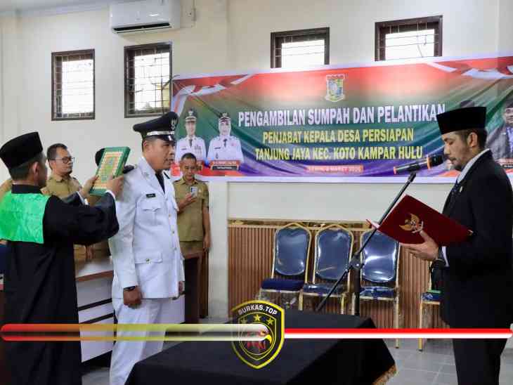 BURKAS.TOP, BANGKINANG KOTA | – Bupati Kampar melalui Plt. Asisten I Setda Kabupaten Kampar, Tengku Said Hidayat, S.STP., M.IP., secara resmi mengambil sumpah jabatan dan melantik Penjabat Kepala Desa Persiapan Tanjung Jaya Kecamatan Koto Kampar Hulu Kabupaten Kampar, bertempat di Aula Kantor Dinas Pemberdayaan Masyarakat dan Desa (PMD) Kabupaten Kampar, Senin (2/3/2026).