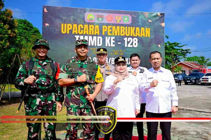 BURKAS.TOP, PINGGIR | – Bupati Bengkalis, Kasmarni, memimpin langsung upacara pembukaan TMMD ke-128, Rabu (22/4/2026), di halaman Kantor Camat Pinggir.