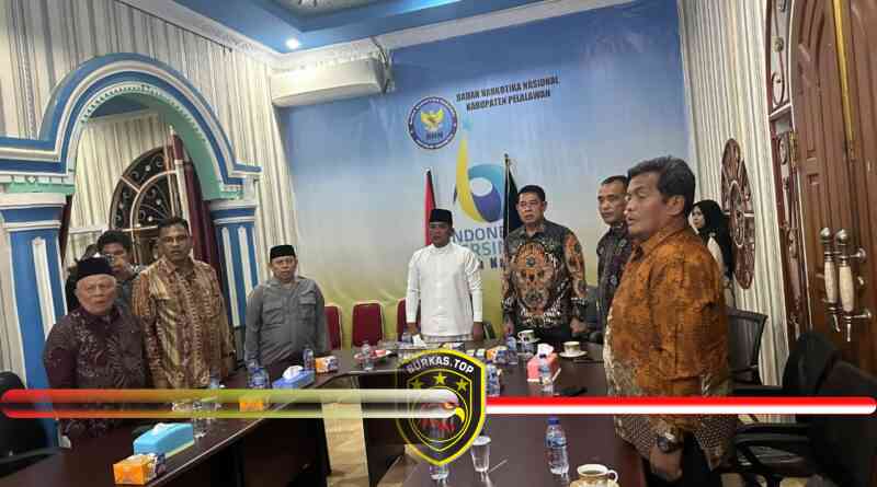 BURKAS.TOP, PELALAWAN |- Bupati Pelalawan H. Zukri menghadiri puncak peringatan Hari Anti Narkotika Internasional (HANI) Tahun 2025 secara daring dari ruang rapat Kantor Badan Narkotika Nasional (BNN) Kabupaten Pelalawan, Kamis (26/6/2025).