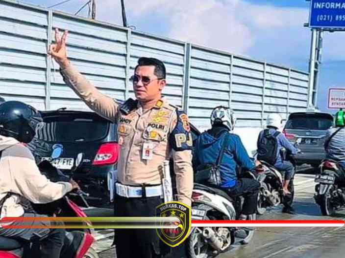 “Ini karena keadaan darurat yang seharusnya tidak boleh motor masuk tol. Namun, karena polisi sayang masyarakat, kita kasih akses,” kata AKP Sandy di hadapan pemotor.