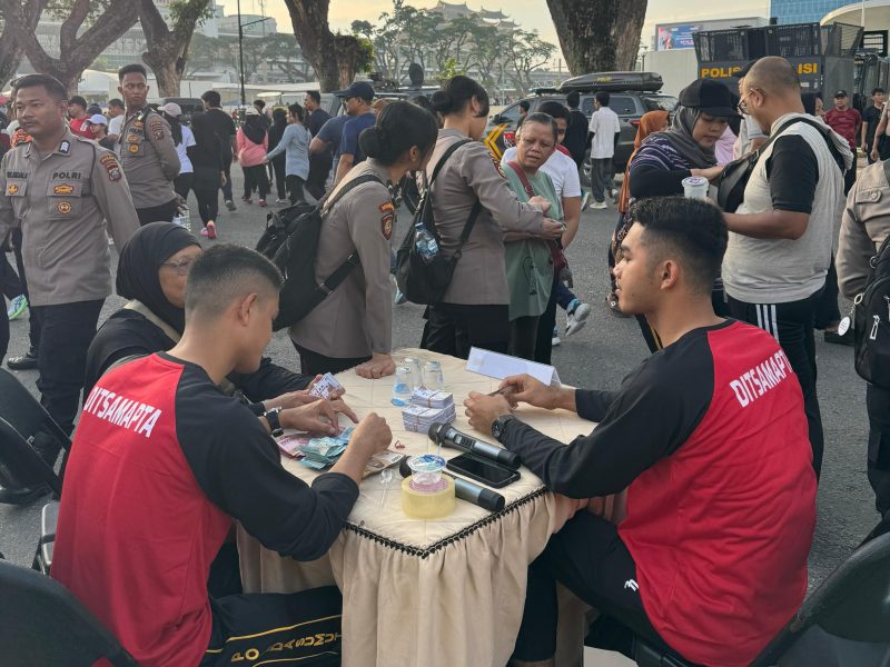 BURKAS.ID, MEDAN |– Direktorat Samapta (Ditsamapta) Polda Sumatera Utara menghadirkan suasana berbeda pada kegiatan Car Free Day di Lapangan Merdeka Medan, Minggu pagi. Melalui Gerakan Pangan Murah, ratusan personel diterjunkan untuk memberikan pelayanan, hiburan, hingga edukasi kepada masyarakat sejak pukul 05.30 hingga 09.30 WIB.