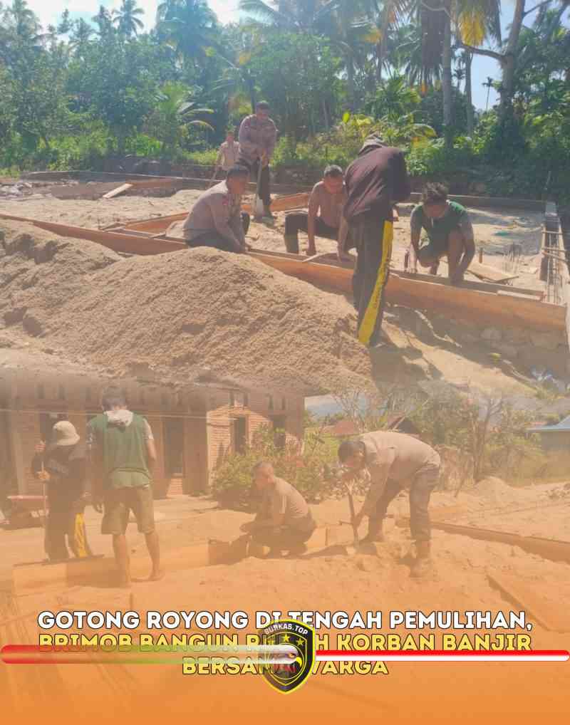 Gotong Royong di Tengah Pemulihan, Brimob Bangun Rumah Korban Banjir Bersama Warga