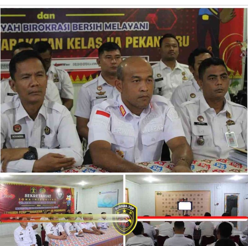 Burkas top –PEKANBARU—Dalam rangka menindak lanjuti arahan menteri imigrasi dan pemasyarakatan,Jajaran Lapas Kelas IIA Pekanbaru mengikuti kegiatan Rapat Persiapan Rencana Dialog Presiden Republik Indonesia dengan Narapidana dan Anak secara virtual melalui aplikasi zoom secara langsung dari Direktorat Jenderal Pemasyarakatan. Rabu (04/12/24).