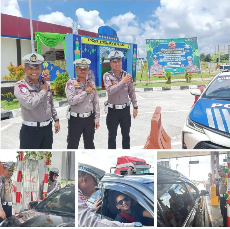 Burkas top –Pekanbaru – Untuk meningkatkan kesadaran masyarakat dalam berkendara selama arus mudik dan jelang arus balik lebaran Ditlantas Polda Riau menggelar patroli rutin di jalan Tol Pekanbaru – Dumai serta sampaikan pesan edukasi keselamatan dalam berlalulintas (Kamseltibcarlantas) di Gerbang Tol Pekanbaru-Dumai, Selasa (01/03/4/2025)