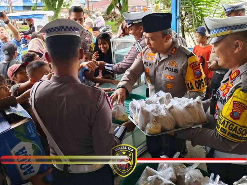 BURKAS.TOP, GUNUNGSITOLI |– Kapolres Nias AKBP Revi Nurvelani, S.H., S.I.K., M.H., bersama Kasat Lantas Polres Nias AKP Sonahami Lase, S.H., serta Personil Sat Lantas Polres Nias Melaksanakan kegiatan rutin “Jumat Berkah” dengan membagikan makanan siang gratis kepada masyarakat di depan Pos Lantas Kota Gunungsitoli. Kegiatan ini dimulai pukul 13.10 WIB dan berlangsung hingga selesai. Jumat (24/01/25).