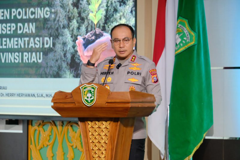 “Konsep ini tidak hanya menjawab kebutuhan lokal Provinsi Riau yang kerap dihadapkan pada persoalan deforestasi, karhutla, dan konflik pengelolaan sumber daya alam, namun juga merumuskan arah baru pemolisian di Riau yang lebih inklusif, preventif, dan berbasis nilai-nilai keberlanjutan,” ujar Irjen Herry saat memperkenalkan konsep Green Policing di Universitas Islam Riau, Kamis (17-4-2025).