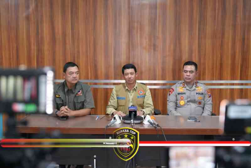 Kepala BNPB Letjen TNI Dr. Suharyanto, S.Sos., M.M., didampingi Deputi Bidang Penanganan Darurat BNPB, Mayjen TNI Budi Irawan, S.I.P., M.SI, dan Kapolda Sumut Irjen Pol Whisnu Hermawan Februanto, S.I.K., M.H., menyampaikan perkembangan terbaru dari Posko Taktis Penanganan Bencana di Tapanuli Utara pada Jumat (28/11).