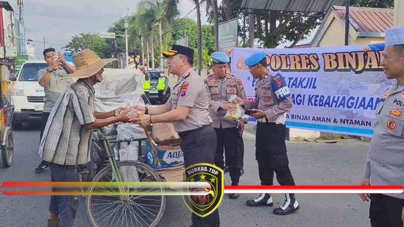 BURKAS.TOP, BINJAI | – Kapolres Binjai, AKBP Mirzal Maulana, S.I.K., S.H., M.M., M.H., melaksanakan aksi sosial dengan membagikan takjil kepada masyarakat yang melintas di depan Mapolres Binjai, Jalan Sultan Hasanuddin No. 1, Kota Binjai, Senin (23/2/2026).