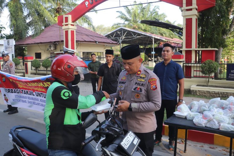 BURKAS.TOP, LANGKAT |- Ramadhan bukan hanya tentang menahan lapar dan dahaga, tetapi juga tentang kepedulian dan berbagi kepada sesama. Ada yang berbeda kali ini di sekitar Mako Polres Langkat. Kapolres Langkat, AKBP David Triyo Prasojo, S.H., S.I.K., M.Si, turun langsung ke jalan membagikan takjil kepada masyarakat yang melintas, menciptakan momen penuh kehangatan dan kebersamaan, Kamis (6/03/2025).
