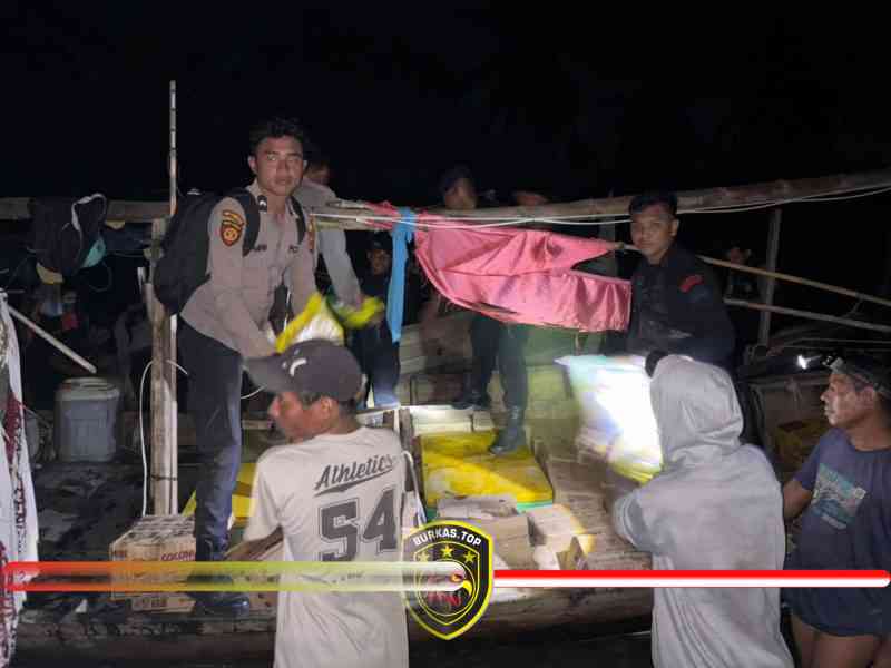 KAPOLRES LANGKAT SALURKAN BANSOS UNTUK KORBAN BANJIR DI PEMATANG JAYA MELALUI JALUR LAUT
