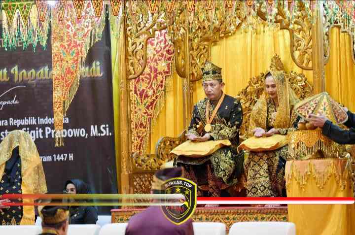 BURKAS.TOP, PEKANBARU |- Kepala Kepolisian Negara Republik Indonesia (Kapolri), Jenderal Polisi Listyo Sigit Prabowo, menerima Penganugerahan Adat Ingatan Budi dari Lembaga Adat Melayu Riau (LAMR) dalam suatu prosesi adat yang berlangsung khidmat di Balai Adat LAMR Provinsi Riau. Sabtu, 12 Juli 2025.