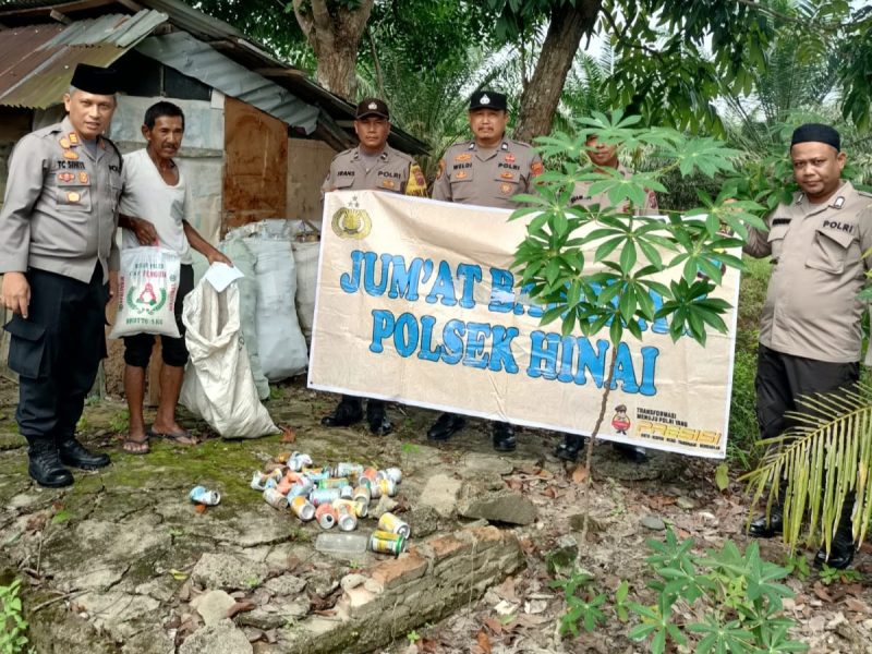Kapolsek Hinai Bersama Anggotanya Laksanakan Jumat Berkah dengan Salurkan Bansos Kepada Warga Kurang Mampu