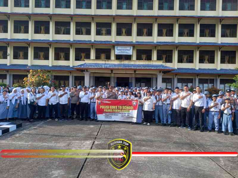 TEBING TINGGI, BURKAS.TOP – Dalam upaya mencegah kenakalan remaja serta meningkatkan kesadaran hukum dikalangan pelajar, Kasat Binmas Polres Tebing Tinggi AKP BSM Tarigan bersama personel Sat Binmas melaksanakan kegiatan Police Goes to School. Kegiatan berlangsung di SMA/SMK Swasta Perguruan Yapim, Desa Binjai, Kecamatan Tebing Syahbandar, Kabupaten Serdang Bedagai, Senin pagi (9/2/2026).