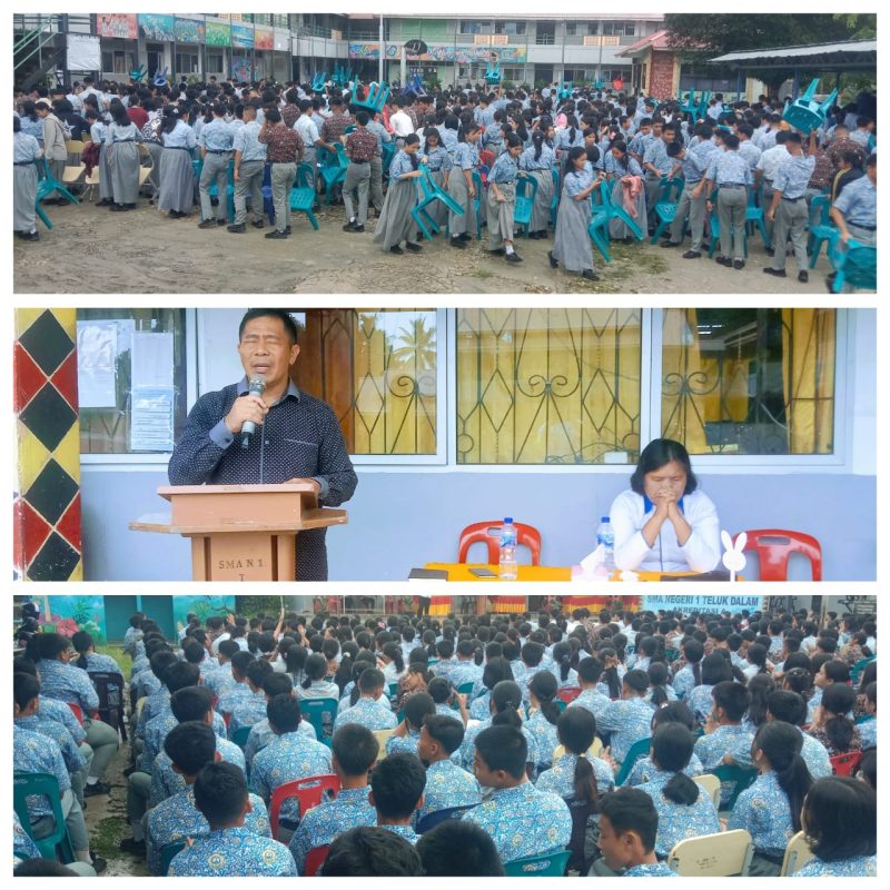 Pada kesempatan itu, Kepala SMA Negeri 1 Teluk Dalam Nursari Rindu Simanullang, S.Pd., M.M., menyampaikan apresiasinya kepada Pendeta Faolohis Evin Sarumaha atas Renungan Firman Tuhan yang disampaikan kepada keluarga besar SMA Negeri 1 Telukdalsm.