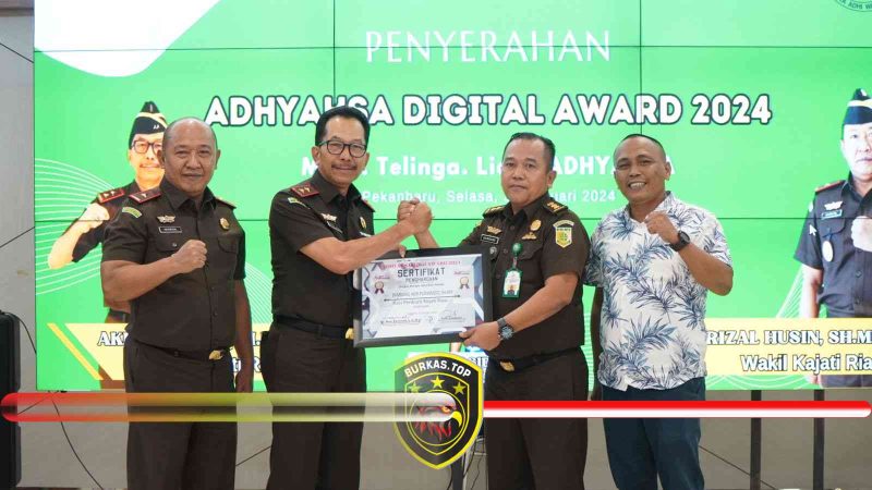 Burkas.top, PEKANBARU – Kepala Kejaksaan Tinggi Riau Akmal Abbas, S.H., M.H menerima Penghargaan Adhyaksa Digital Award 2024 sebagai sosok Pemimpin yang Humanis bertempat di Aula Vicon Lt II Gedung Satya Adhi Wicaksana Kejaksaan Tinggi Riau, Selasa (30/01/2023) sekira pukul 13.30 WIB.