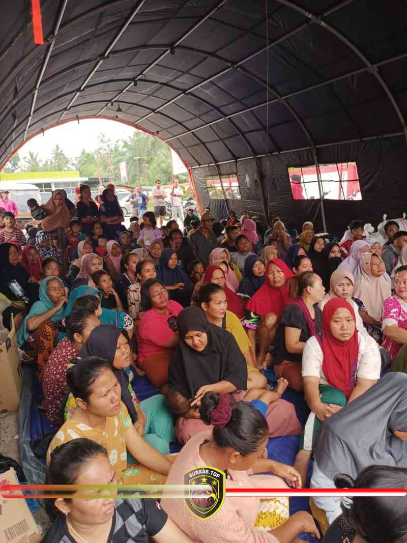 BURKAS.TOP, LANGKAT | — Ketua Bhayangkari Cabang Langkat Ny. Ayu David Triyo Prasojo, didampingi wakil Ketua Bhayangkari Ny. Pesah Husnil, bersama pengurus dan Ketua Ranting Bhayangkari Hinai, meninjau posko pengungsian banjir di Desa Batu Melenggang, Kecamatan Hinai, Minggu (30/11/2025).