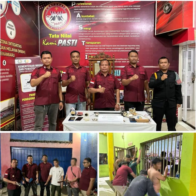 “Hari ini kami kembali melakukan razia pada kamar hunian Lapas Kelas IIA Pekanbaru. Ini adalah tindak lanjut dari perintah Menteri Imigrasi dan Pemasyarakatan dalam melakukan deteksi dini gangguan kamtib serta pelaksanaan razia secara serentak oleh lapas dan rutan sewilayah Riau,” ujarnya.
