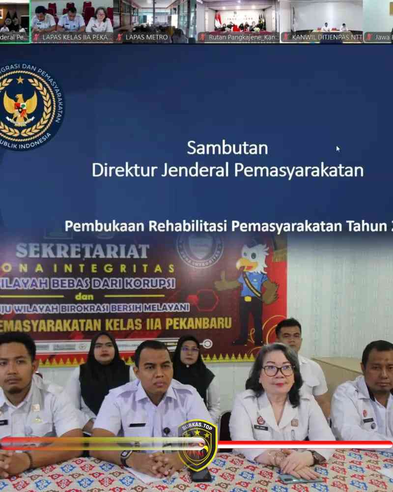 Burkas top —Pekanbaru, – Lembaga Pemasyarakatan (Lapas) Kelas IIA Pekanbaru mengikuti kegiatan pembukaan Rehabilitasi Pemasyarakatan tahun 2025 secara daring. Kegiatan ini dilaksanakan sebagai tindak lanjut dari surat Direktur Perawatan Kesehatan dan Rehabilitasi Direktorat Jenderal Pemasyarakatan, Rabu (15/01/2025).