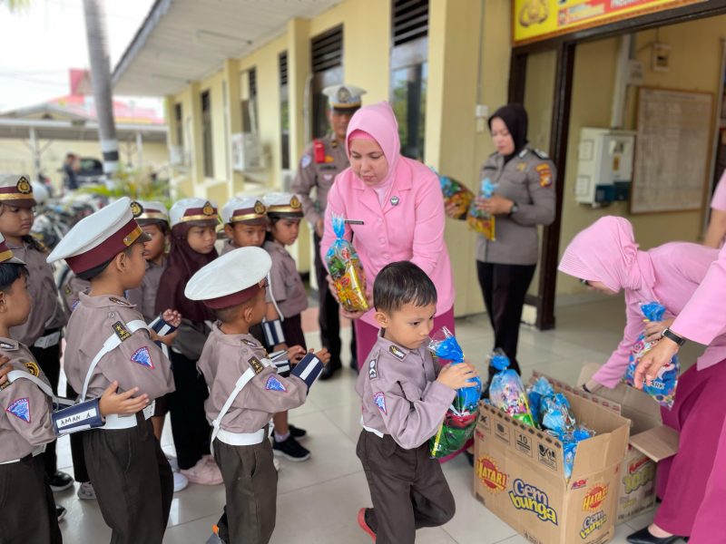 Selain itu, guru-guru TK Kemala Bhayangkari 10 Bangko dan beberapa personel dari Polsek Bangko turut hadir menyemarakkan kegiatan.