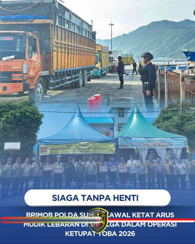 BURKAS.TOP, SIBOLGA | – Komitmen memberikan rasa aman di tengah euforia mudik Lebaran kembali ditunjukkan oleh personel Batalyon C Satuan Brimob Polda Sumatera Utara. Dalam rangka Operasi Kepolisian Terpusat “Ketupat Toba 2026”, Brimob hadir langsung di titik-titik vital Kota Sibolga untuk memastikan seluruh aktivitas masyarakat berjalan aman, lancar, dan kondusif, Rabu (18/03/2026).