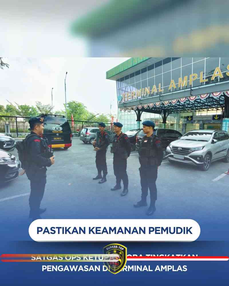 BURKAS.TOP, MEDAN | – Dalam rangka memberikan rasa aman dan nyaman kepada masyarakat menjelang perayaan Hari Raya Idul Fitri 1447 Hijriah, personel Satuan Brimob Polda Sumatera Utara yang tergabung dalam Operasi Kepolisian Terpusat Ketupat Toba 2026 melaksanakan kegiatan pengamanan di Terminal Bus Amplas, Kota Medan, Selasa (17/3/2026).