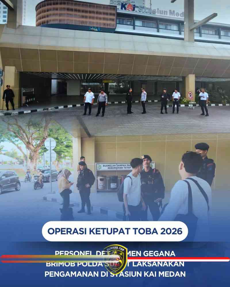 BURKAS.TOP, MEDAN | – Dalam rangka memastikan keamanan dan kenyamanan masyarakat menjelang perayaan Hari Raya Idul Fitri 1447 Hijriah, personel Detasemen Gegana Satuan Brimob Polda Sumatera Utara melaksanakan kegiatan pengamanan dan pemantauan di kawasan transportasi publik strategis. Kegiatan ini merupakan bagian dari pelaksanaan Operasi Kepolisian Terpusat Operasi Ketupat Toba 2026, yang digelar untuk memberikan pelayanan maksimal kepada masyarakat selama arus mudik Lebaran.