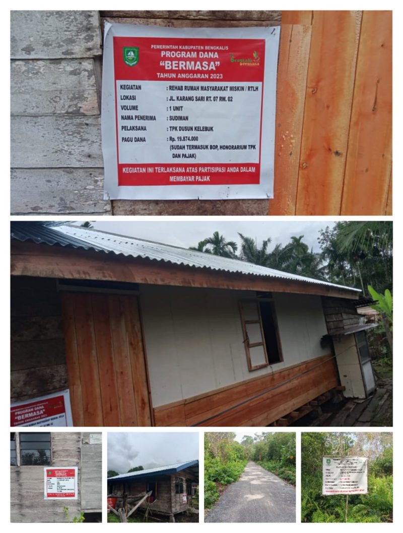 Yang nanti nya akan di laksanakan di dua dusun pertama dusun karangsari dan kedua dusun kelebuk untuk kegiatan pembangunan jalan sebesar Rp 119.898.200 yang juga dari dana bermasa dan masih banyak lagi kegiatan yang lain yang belum terpublikasi dari anggaran dana bermasa berhubung masih dalam pelaksanaan dan untuk keseluruhan pekerjaan rehab rumah miskin di desa kelebuk kecamatan Bengkalis ada 28 unit rumah dari sumber dana yang berbeda , bermasa dan dana desa dan Sugeng juga menjelas kan kalau rehab rumah dari dana bermasa sebesar Rp 200 juta untuk 13 unit dan 15 unit dari dana desa kita masih proses berjalan ungkapnya saat di konfirmasi oleh media ini di kantor desa kelebuk pada 6 Desember 2023