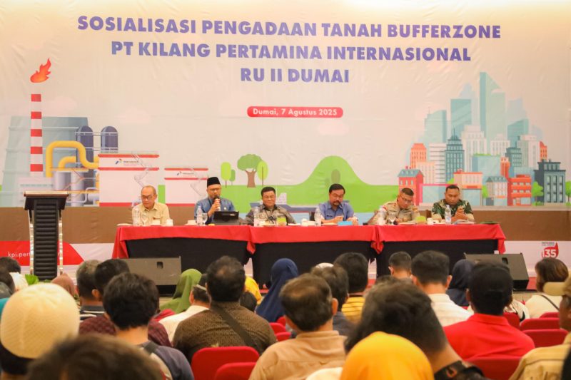 BURKAS.TOP, DUMAI | – Pemerintah Kota (Pemko) Dumai menegaskan komitmennya untuk membantu mempercepat proses pengadaan lahan bagi buffer zone PT Kilang Pertamina Internasional (KPI) Refinery Unit (RU) II Dumai. Hal ini disampaikan oleh Kepala Dinas Pertanahan dan Tata Ruang, Muhammad Mufarizal, saat menghadiri Sosialisasi Pengadaan Tanah di Ballroom Hotel Grand Zuri, Kamis (7/8/2025).