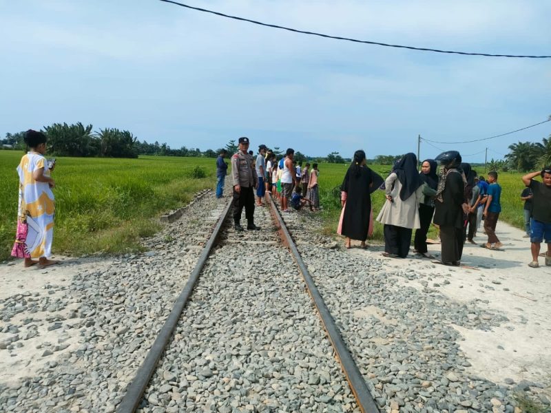 BURKAS.TOP, SERGAI |- Personel Polsek Firdaus Polres Serdang Bedagai (Sergai) melakukan pengecekan lokasi kecelakaan seorang abang becak yang tertabrak kereta api di perlintasan tanpa palang, tepatnya di Dusun 8 Potean, Desa Suka Damai, Kecamatan Sei Bamban, Sergai, Sumatera Utara, Kamis (20/02/2025) sekitar pukul 15.00 WIB.