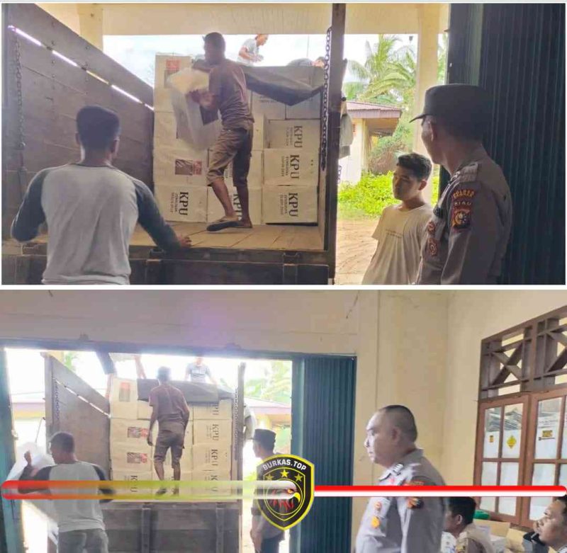 Burkas top –Kampar –pelaksanan pengamanan berikut Pendistribusian Logistik Pemilihan Gubernur dan Wakil Gubernur, Bupati dan Wakil Bupati Tahun 2024 Kab. Kampar berupa Kotak suara, Bilik suara, Box besar berisi Model, C hasil/plano, Box besar berisi Model C hasil salinan, BA dan Rekap, Box besar berisi Model C hasil KWK Gubernur, Box besar berisi Model C hasil KWK Bupati dan kelengkapan lainnya dari PPK Kecamatan Tambang Gudang Logistik KPUD Kab. Kampar,Minggu pkl;12.25 wib (1/12/24)