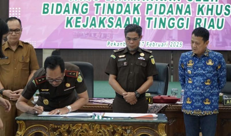Kegiatan penyerahan aset hasil pengamanan & penertiban oleh bidang Tindak Pidana Khusus kepada Pemkab Kampar diakhiri dengan Penandatanganan Berita Acara Penyerahan Aset dan Penyerahan Aset secara langsung oleh Kepala Kejaksaan Tinggi Riau kepada Pj. Bupati Kampar.