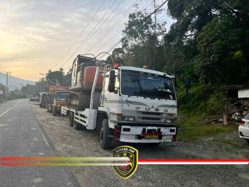 BURKAS.TOP, MEDAN | — Polda Sumatera Utara mengamankan dua unit alat berat jenis ekskavator yang diduga akan digunakan untuk aktivitas pertambangan emas tanpa izin (PETI) di Kabupaten Mandailing Natal (Madina), Sumatera Utara, Senin (2/3/2026) pagi.