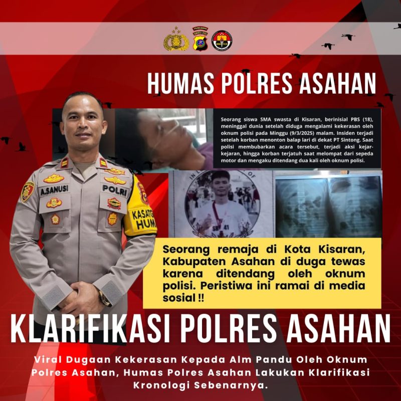 Ia juga mengimbau masyarakat untuk tidak terprovokasi oleh informasi yang belum terverifikasi. Polres Asahan siap bekerja sama dengan pihak terkait, termasuk keluarga korban dan saksi, guna mengungkap fakta yang sebenarnya secara transparan.