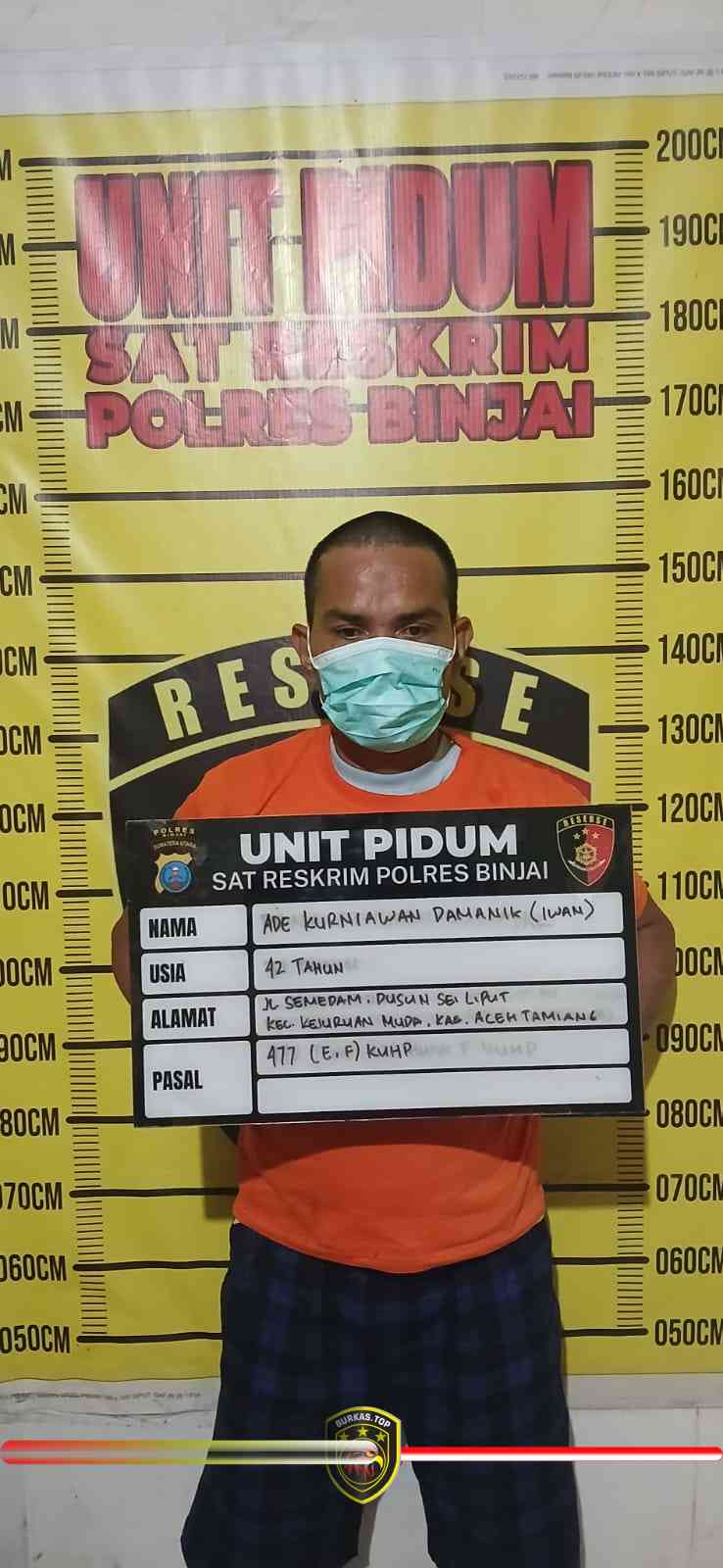 Atas tindakannya, tersangka A dijerat dengan Pasal 477 Undang-Undang Nomor 1 Tahun 2023 tentang KUHP. “Tersangka beserta barang bukti telah dibawa ke Polres Binjai guna kepentingan penyidikan lebih lanjut,” pungkas Kasat Reskrim melalui Kasihumas AKP Junaidi.