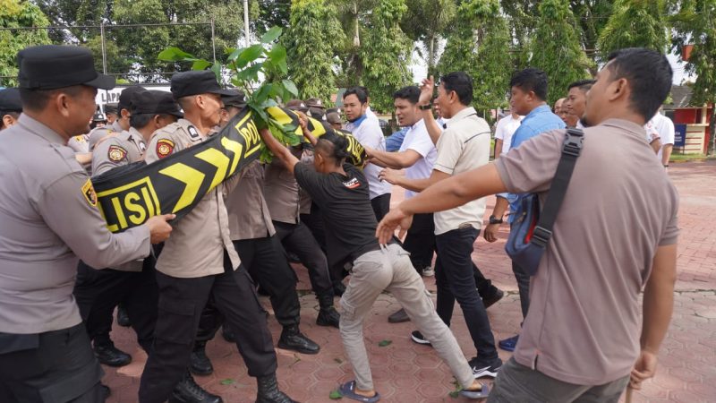 Kegiatan Peragaan Dalmas Personil Polres Langkat berjalan dengan baik dan lancar, Ipda Pembina Ginting dan Aiptu Shuhartoni bertindak sebagai pelatih kegiatan tersebut. (**/M Taufik)