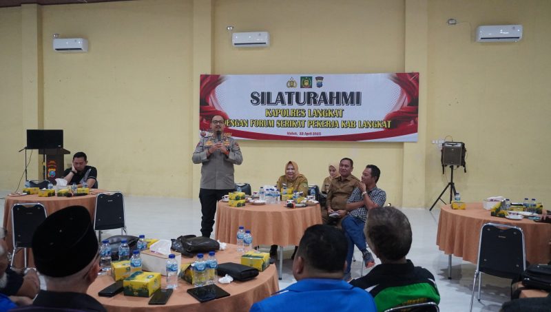 BURKAS.TOP, LANGKAT |– Dalam rangka menciptakan situasi yang aman dan kondusif menjelang peringatan Hari Buruh Internasional (May Day) pada 1 Mei 2025, Kepolisian Resor (Polres) Langkat menggelar kegiatan silaturahmi bersama Wakil Bupati Langkat Tiorita Br Surbakti, SH, Dinas Tenaga Kerja (Disnaker) Kabupaten Langkat dan sejumlah perwakilan Serikat Pekerja di wilayah kabupaten Langkat . Kegiatan berlangsung di Aula Bharadaksa Polres Langkat, Selasa (22/04/2025).