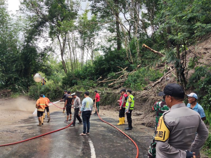 Mereka menggunakan peralatan seperti cangkul, skop, serta kendaraan patroli untuk membersihkan jalan dan memastikan keamanan pengendara. Selain itu, petugas juga mengatur arus lalu lintas serta mengimbau masyarakat agar sementara waktu menghindari lokasi terdampak longsor.
