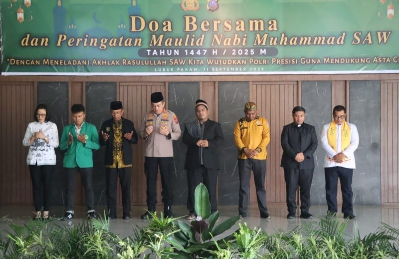 BURKAS.TOP, DELI SERDANG | – Polresta Deli Serdang menggelar peringatan Maulid Nabi Muhammad SAW 1447 Hijriah yang dirangkai dengan doa bersama untuk keselamatan bangsa, Kamis (11/09/2025).