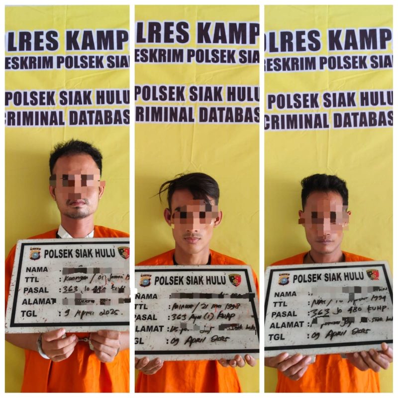 Burkas top –Siak Hulu, – Satuan Reskrim Polsek Siak Hulu berhasil mengungkap kasus pencurian kendaraan bermotor (Curanmor) yang terjadi di 6 lokasi di wilayah hukumnya. Para pelaku yang berhasil diamankan adalah FS (27), TG (31), dan NG (31). Kejahatan ini terjadi pada hari Selasa (25/03/2025) sekira pukul 21.00 WIB di Jl. Kedondong Raya Blok C Rt 003 Rw 003 Desa Pandau Jaya Kec. Siak Hulu Kab. Kampar.