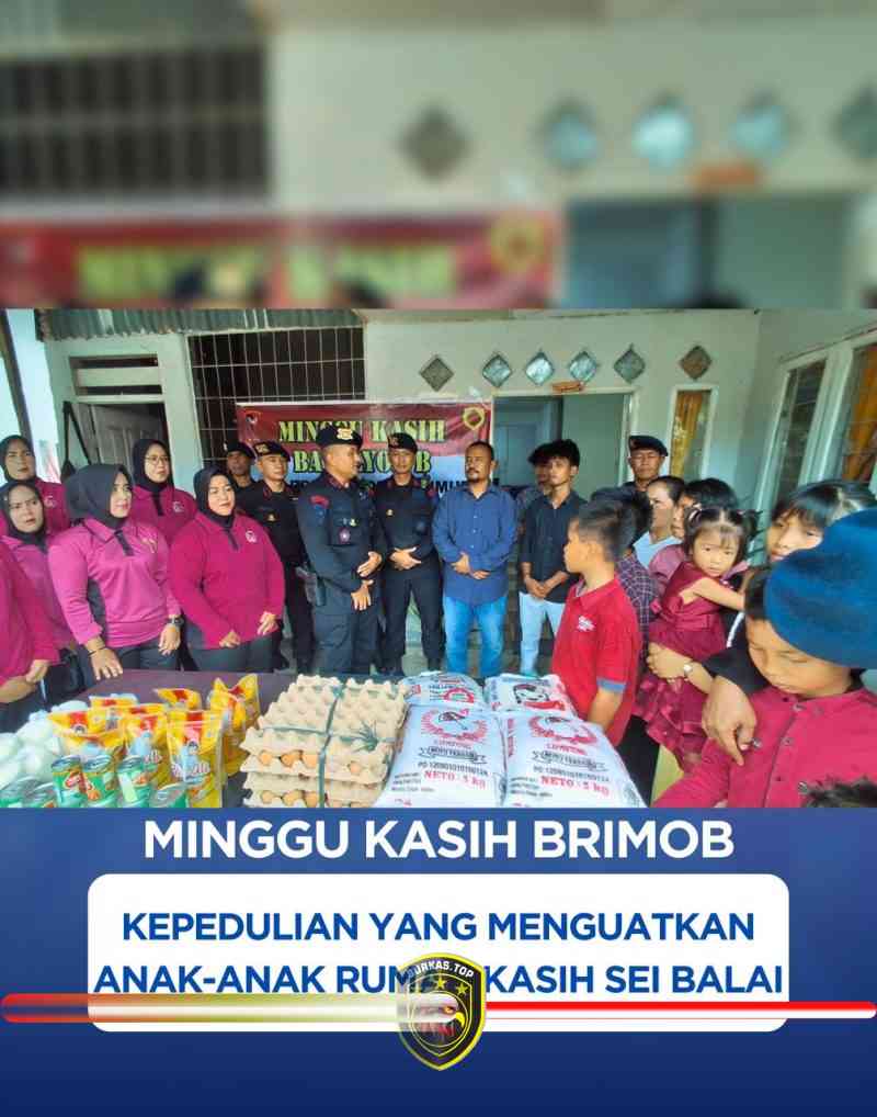 BURKAS.TOP, BATU BARA | – Personel Brimob Kompi 3 Batalyon B Polda Sumut bersama Bhayangkari melaksanakan kegiatan “Minggu Kasih” dengan mengunjungi Rumah Kasih Yayasan Gunung Sion Kanaan di Kecamatan Sei Balai, Kabupaten Batu Bara, Minggu (1/3/2026).